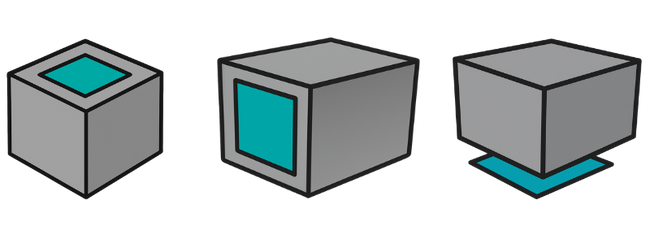 Vorderseite, Rückseite, Seitenfläche, Oberseite und Unterseite. Je nach Einbaulage wird das Etikett exakt an der gewünschten Fläche bereitgestellt und angedrückt, auch bei wechselnden Formaten.